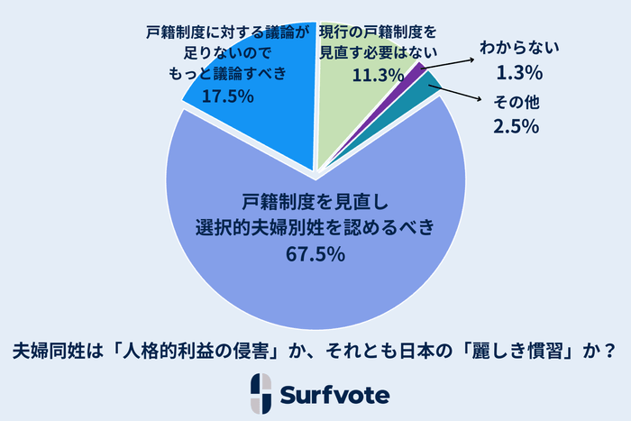 社会課題に参加できるSNS Surfvote結果速報『夫婦同姓は「人格的利益の侵害」か、それとも日本の「麗しき慣習」か?』