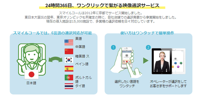 2012年スタートの「スマイルコール」ですが、最初は自社運営の店舗で必要に迫られて実用化したものです。その当時、京都にある弊社店舗でも外国人観光客が増加していた時期でした。