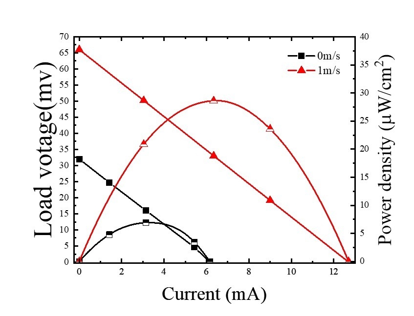 実証実験では、わずかな温度差(5K)で静止時7μW/cm2、歩行時(風速1m/s)29μW/cm2を発電することを確認し、従来品に用いられるPDMSより柔軟性もがあり、曲げ張力が1/5程度でありました。今回、面積3.61cm2、厚み5mm、量さ1.75g、曲げ張力0.75g、コスト6.5USドルほどでスマートウォッチを駆動できる熱発電機の製造に成功しました。