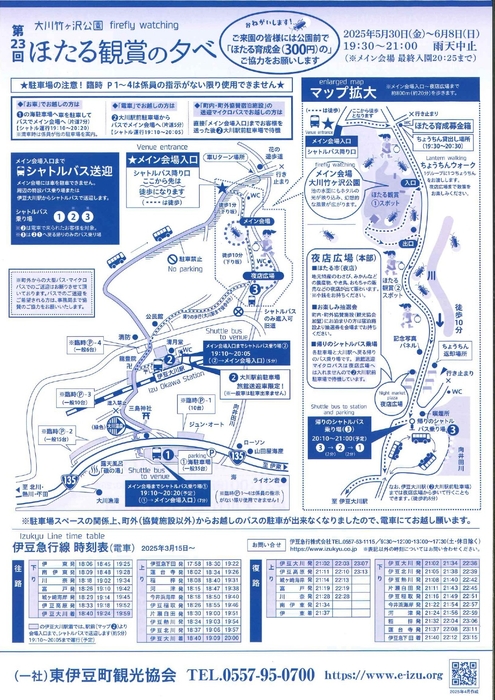 一般社団法人東伊豆町観光協会(所在地:静岡県賀茂郡東伊豆町:代表理事 加藤昌利)は 2025年5月30日(金)~6月8日(日)の10日間、わさび育つほたるの町、大川温泉にて第23回を数える「ほたる観賞の夕べ」を今年も開催します。伊豆の温泉旅行の道中で天城の麓を飛び交うほたるをお楽しみください。