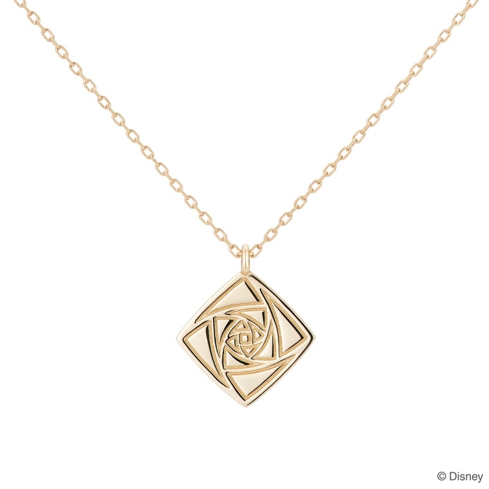 ゴールドのプレートにバラの花が開き、もう片面にはヒロイン「アーシャ」と「スター」のシルエットが刻印されたリバーシブルデザイン。願う事の大切さや行動する勇気をいつも胸に感じられそう。