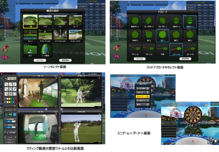 「ミニゲーム」と「オンライン対戦」機能も搭載されており。ラウンドゲームとは違った遊び方を楽しんだり、オンラインで世界中のゴルファーと競い合ったり1台のシミュレーターで様々な楽しみ方ができるのが特徴です。