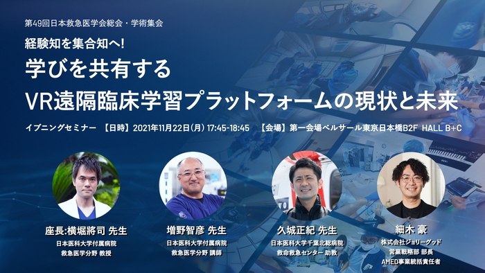 この度、株式会社ジョリーグッド(東京都中央区、代表取締役:上路健介、以下 ジョリーグッド)は、11月22日(月)「第49回日本救急医学会総会・学術集会」にて、学会共催の大規模VR医療セミナーを実施します。また本セミナーの様子は、オンライン配信にてご覧いただけます。