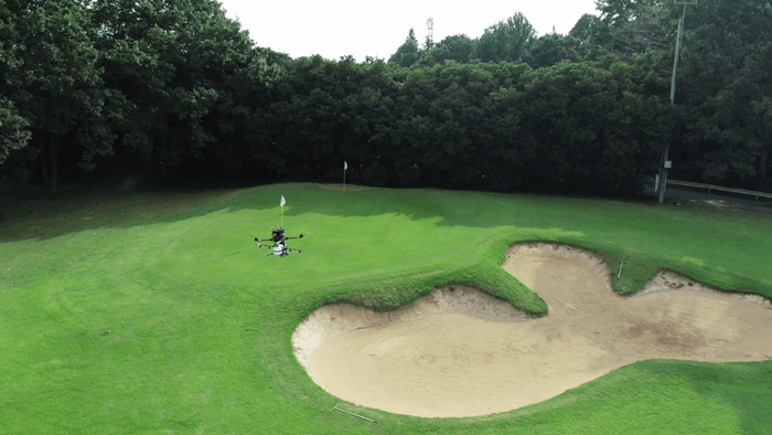 そこで、グリーン管理を専門に手掛ける株式会社PFJ(代表取締役:新井 博、以下「PFJ」)のアドバイスのもと、「完全自律飛行でピンポイント散布できるドローン」を用いた実証実験を開始しました。