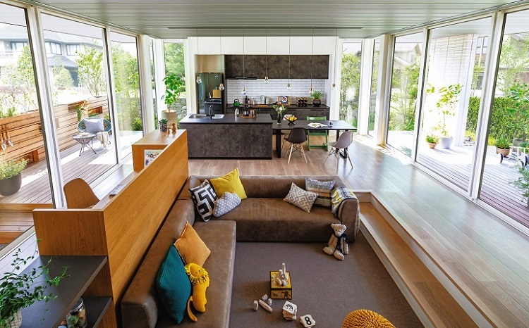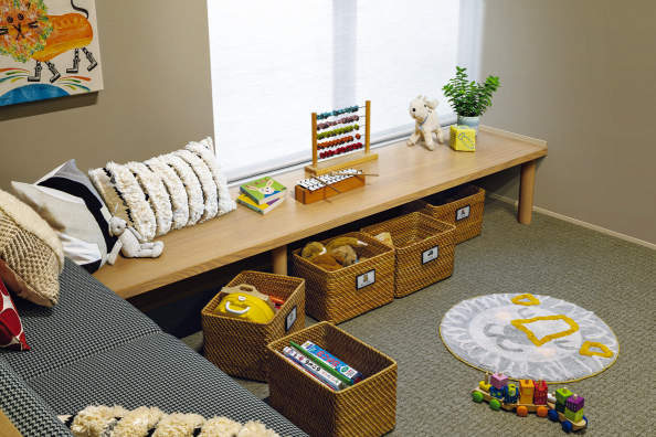 (1) リビングに子どものいどころを:子どもが長い時間を過ごすリビングに、くつろげるいどころをつくってはいかがでしょうか。一部の床の高さを下げる、家具で囲うなどの工夫で自分の領域感が出て、好きなことをしてのびのび過ごせる空間になります。リビングに子どもがいれば、両親が家事などをしながら見守れるのも嬉しいポイントです。子ども部屋をどうするかは、子どもの性格や生活習慣、心の成長に合わせてゆっくり考えるのもいいかもしれません。