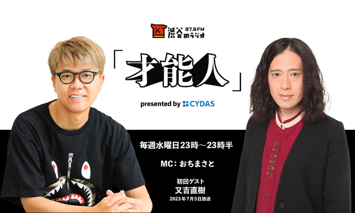 タレントマネジメントシステム「CYDAS PEOPLE(サイダスピープル)」の開発・販売を手がける株式会社サイダス(本社:東京都港区、代表取締役:松田 晋、以下 サイダス)は、2023年7月5日(水)より渋谷のラジオにて放送開始されるラジオ番組「才能人」(毎週水曜日23:00〜23:30)への提供を開始します。パーソナリティは、おちまさと氏です。