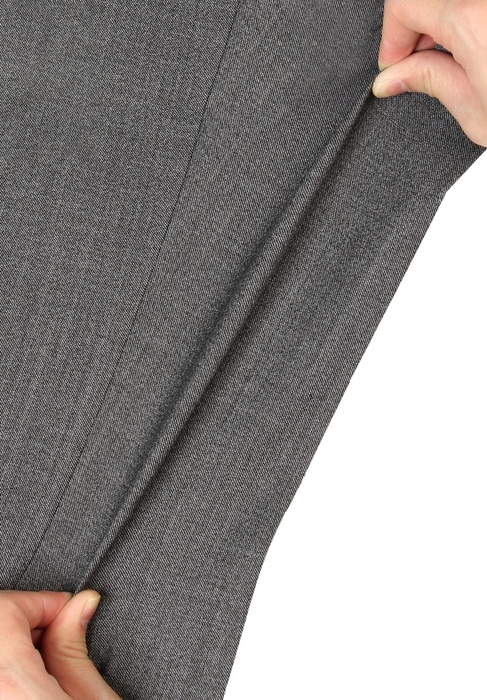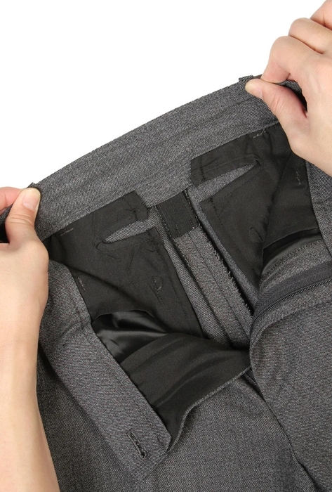 今回発売する夏仕様の商品は、生地に接触冷感素材を使用することによる“ひんやり”としたドライタッチな肌触りが特徴です。また、従来の縦方向へのストレッチを縦・横の両方向に伸縮する2WAYストレッチに改良することで、動きやすさをさらに向上させています。腰部の後ろ側にはアクションプリーツ(特許取得)を取り付けており、着席姿勢に合わせてプリーツが広がることで、ヒップ部に感じやすい生地の張りを軽減する他、ウエストストレッチを採用することでお腹回りの窮屈感も緩和します。膝部にはゆとりをもたせる立体縫製を取り入れています。商品はニット素材と麻調素材の2種類を用意し、ストレスフリーな着用感に加えて、自宅で洗える手入れの手軽さも魅力です。