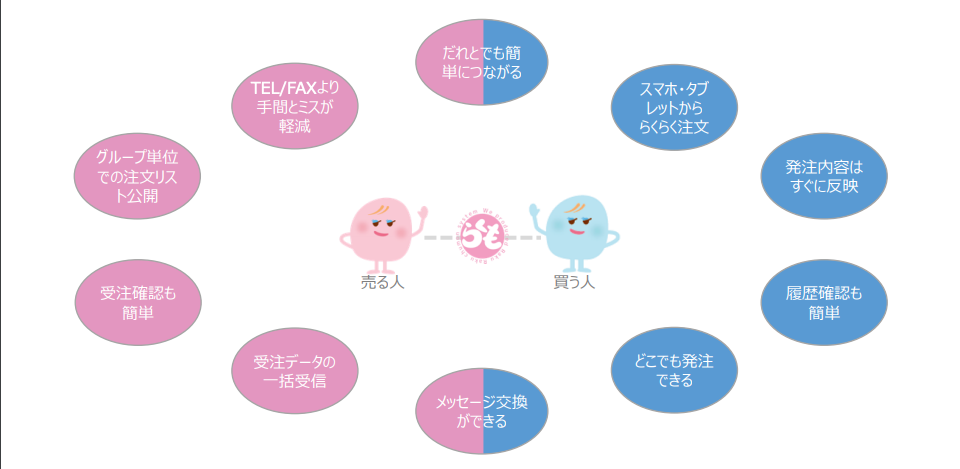 『らくも』とは、FAXや電話などのアナログ発注業務を改善できる、クラウド型受発注管理システムです。