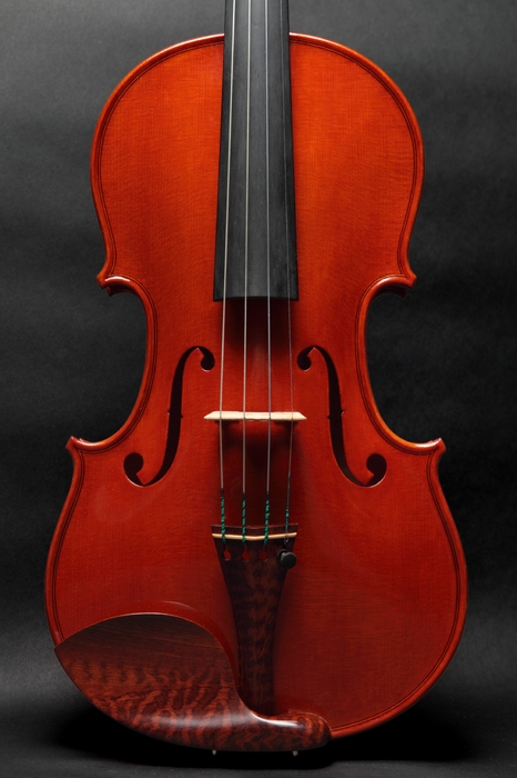 では一体、21世紀に何を提案できるかと考える中で、一つの答えとして発展している音響学を積極的に取り入れ、現代バイオリン製作の”音の精度”を向上させることに注力するようになりました。現在の技術では、使用する木材の選定において、動的ヤング率や減衰率などの音響特性を製作する前から測定できたり、完成した楽器がどの様に振動しているかを数値や3Dイメージで確認できるようにまで進歩しています。しかし、楽器が振動し音を生み出す過程は複雑系であり、木という均質ではないマテリアルを使う特性上、各製作工程で得られる数値はあくまである側面を計測しているだけに過ぎません。その数値をどう解釈し、どのようにコントロールしていくかはやはり経験によります。音響学を取り入れる事で、機械的な仕事になるのではなく、数値をどの様に扱うかという、新たな職人としての経験が問われる時代になったと感じています。