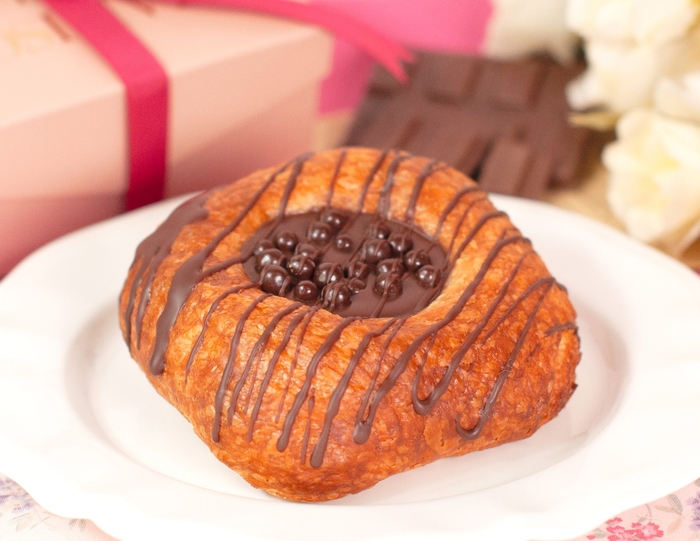 商品特徴:チョコ好きさんにはたまらない!なめらかなチョコレートとバター香るデニッシュを一緒に楽しめる逸品。サクッとした食感でチョコレートの甘さが口いっぱいに広がります。