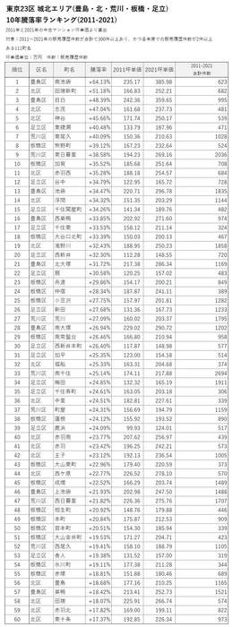 ■城北エリア 10年騰落率ランキング(2011-2021)