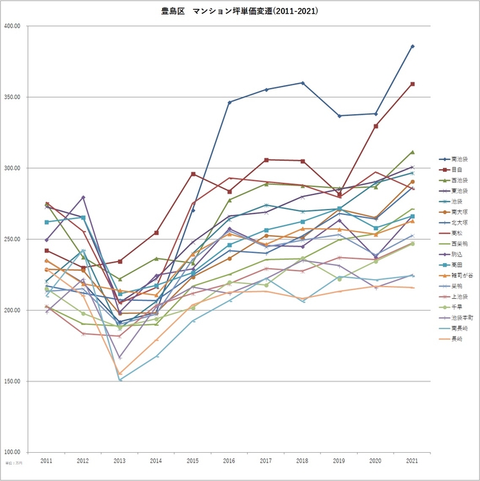 再開発で話題の「南池袋」強し!坪単価・騰落率ともトップに