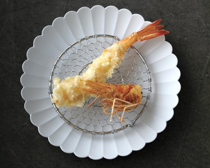 サクッとした食感、上品なコクと軽い薄衣の天ぷらにするため、選び抜いた「綿実油」をブレンドし揚げ油に使用しております。軽やかな味わいをどうぞ。