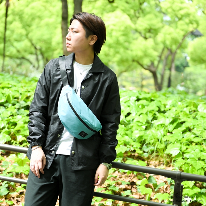 ベーシックなサイズで使いやすい、撥水・防水の生地を使用したボディバッグ。内面にはファスナー付きメッシュポケット、背面には収納性を高めるファスナー付きポケットがついており、収納力も抜群です。背面は通気性を高める為、メッシュ素材を使用し、止水ファスナーが採用されています。