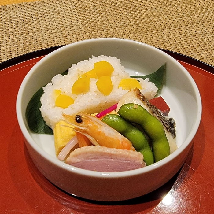 さらに、「Kissa;co」では甘味箱と軽食を組み合わせたランチセットもご用意していますが、秋メニューではこれまでのミニちらし寿司またはいなり寿司に代わり、栗ご飯または鮭ご飯を取りそろえました。