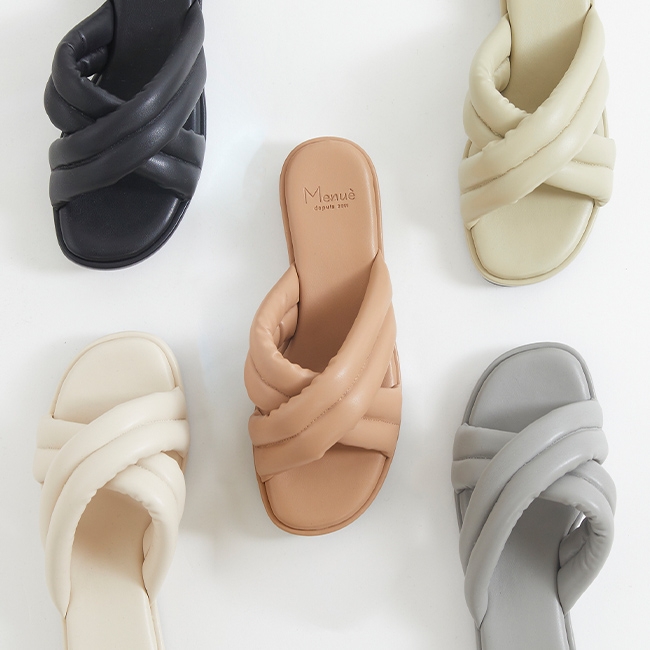 ぷっくり立体ストラップで今シーズンらしい足元にアップデート。