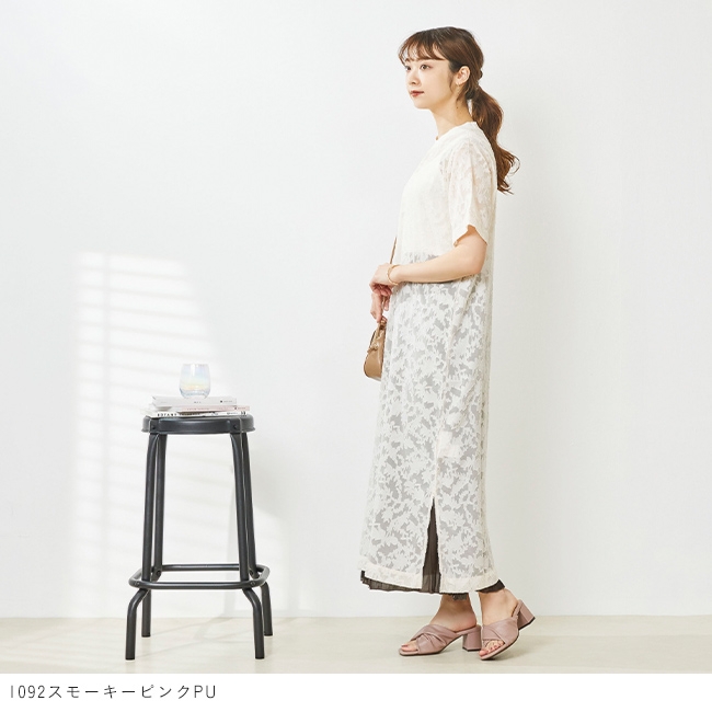 スクエアトゥ×クリアヒールのコバサンダルでおしゃれ度アップ。