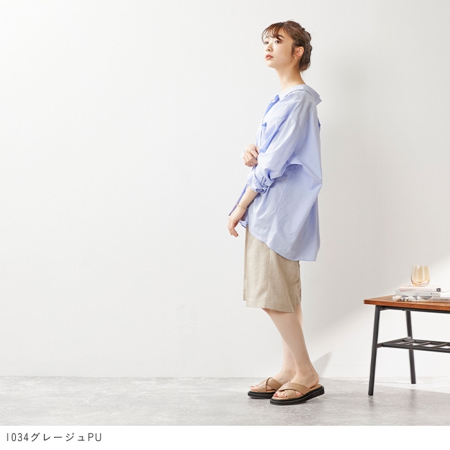 程よい3cmの高さのウエッジソールはやや前傾姿勢になり、ぺたんこよりも歩きやすい。