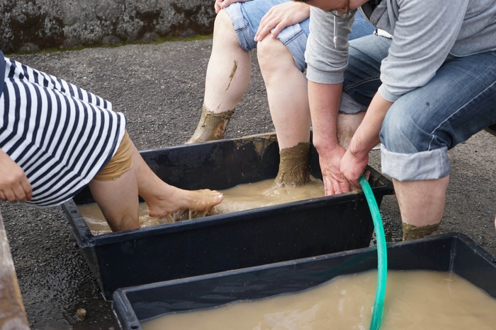 植え付け後には、足湯や焚き火で暖を取りながら、いぐさ茶や焼き芋で腹ごしらえ、最後にはお楽しみ抽選会も準備しています。