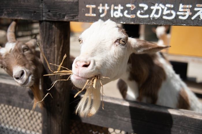 特に「おさんぽ羊」のはな子ちゃんや、「おさんぽヤギ」のつるきちくんと一緒に散歩できる体験は、子どもたちに人気です。動物たちにエサをやる体験もでき(エサ 100 円)、動物との触れ合いを通じて生き物の温もりを身近に感じることができます。