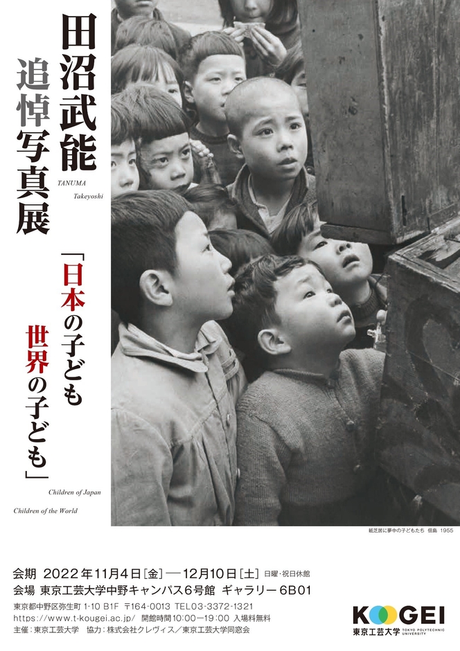 東京工芸大学(学長:吉野弘章、所在地:東京都中野区 以下、本学)は、本学の卒業生で名誉教授であった写真家の故・田沼武能氏(以下、氏)の追悼写真展「日本の子ども世界の子ども」(以下、本追悼展)を、2022年11月4日(金)から12月10日(土)まで、本学中野キャンパス6号館ギャラリー6B01で開催します。