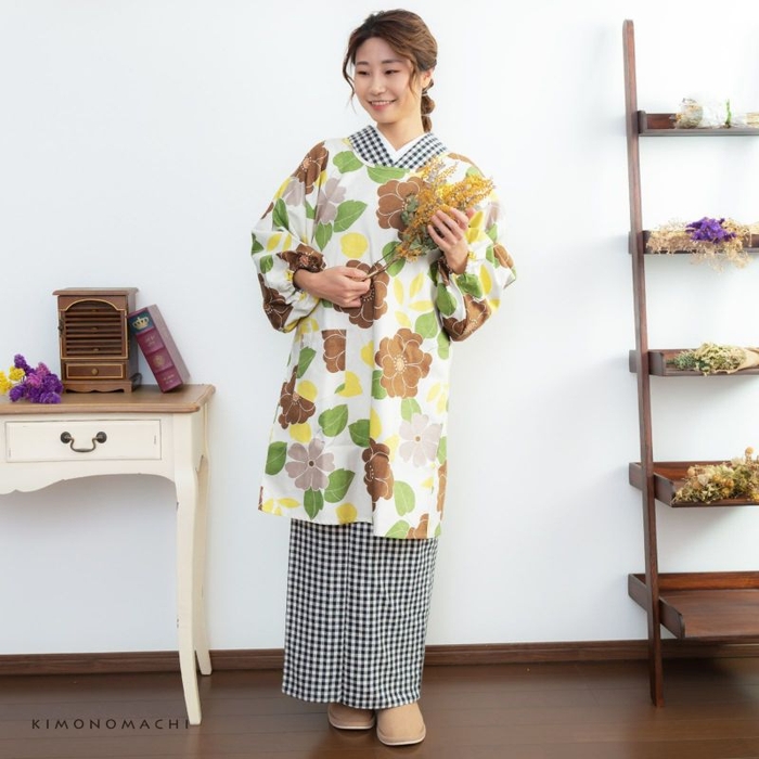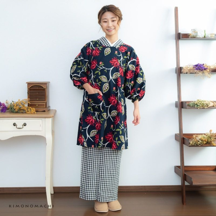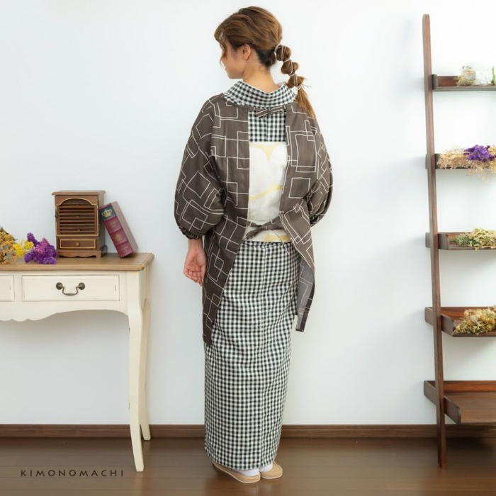 家事や料理、DIYやハンドメイドの作業時の汚れ防止に、着物だけでなく普段着の洋服にも。