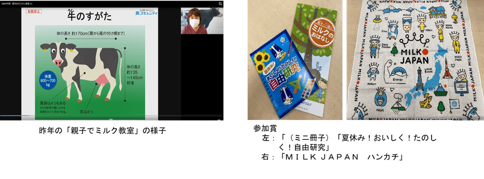 参加者には特典として、「MILK JAPAN ハンカチ」と「(ミニ冊子)夏休み!おいしく!たのしく!自由研究」を、全員にプレゼントします。