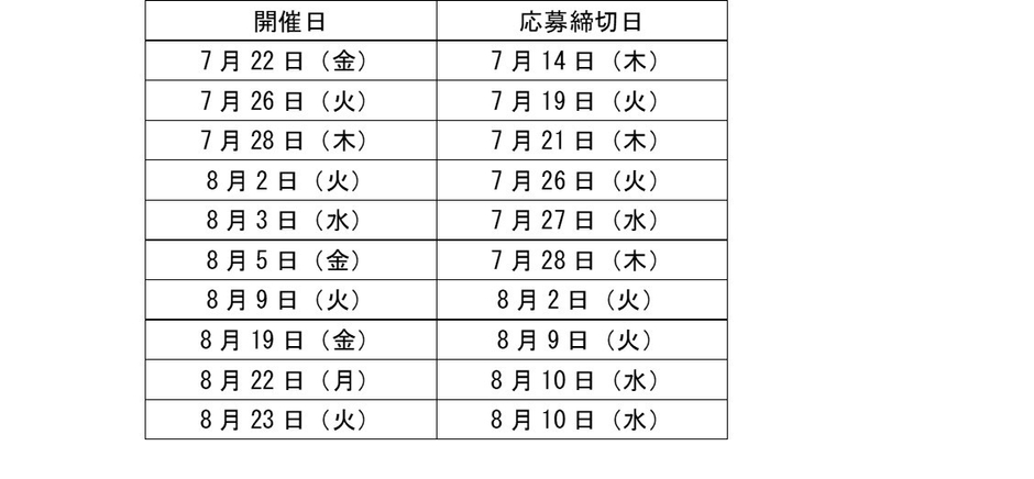 (1)開催日:2022年7月22日(金)、26日(火)、28日(木)、8月2日(火)、3日(水)、5日(金)、9日(火)、19日(金)、22日(月)、23日(火)