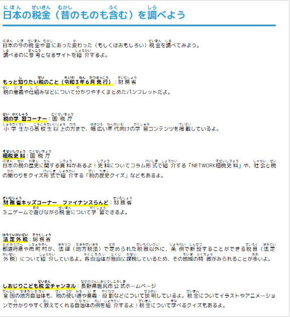 ●「知ってためになる☆税金のいろいろ自由研究」(https://kids.gakken.co.jp/jiyuu/tax/)