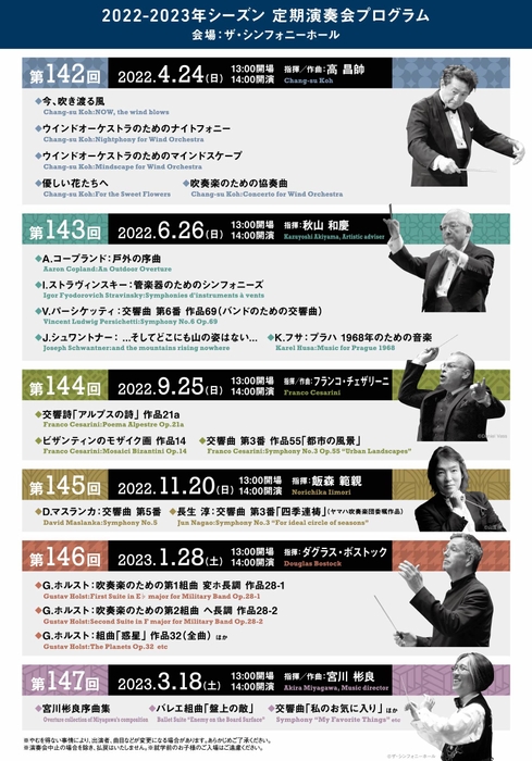 2022-2023年シーズン 定期演奏会プログラムを発表! Osaka Shion Wind Orchestraが贈る!豪華指揮者陣と多彩なプログラム全6公演!お得な定期会員券は2022年1月7日(金) 一般販売開始