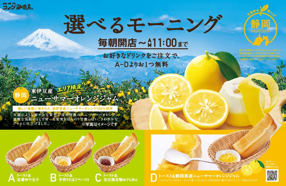 【コメダ珈琲店】\地域の特産品をモーニングで味わう/ “生産者と地域をつなぐ”地域限定モーニングサービス 「静岡県産 ニューサマーオレンジジャム」を8月18日(水)より 東京・神奈川・山梨・静岡・愛知のコメダ珈琲店で限定販売!