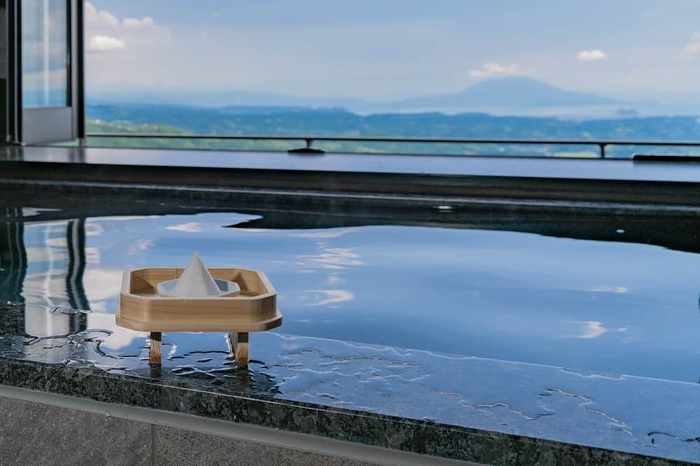 神話が息づく高千穂峰の中腹に建ち、全ての客室から桜島を見下ろす開放的なビューが広がります。スロープカーで下りた草原には湯浴み小屋が佇み、霧島高原を見晴らす景観を眺めながら、心身ともに開放される温泉旅館です。