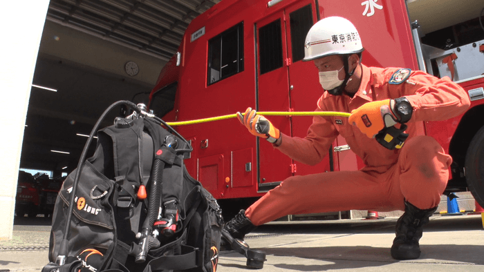 東京消防庁 小岩消防署「水難救助隊」の山田貴大さん(29歳)が所属するのは、荒川と江戸川の間に位置する小岩消防署。東京消防庁に入庁後に水難救助選抜試験に合格し、今年の4月に配属されたばかりの新人です。「水難救助隊」に入るには、消防士として入庁したあと潜水士の国家資格を取得し、選抜試験に合格しなければなりません。消防士と兼任するため、火災出動指令があれば消火活動も行います。