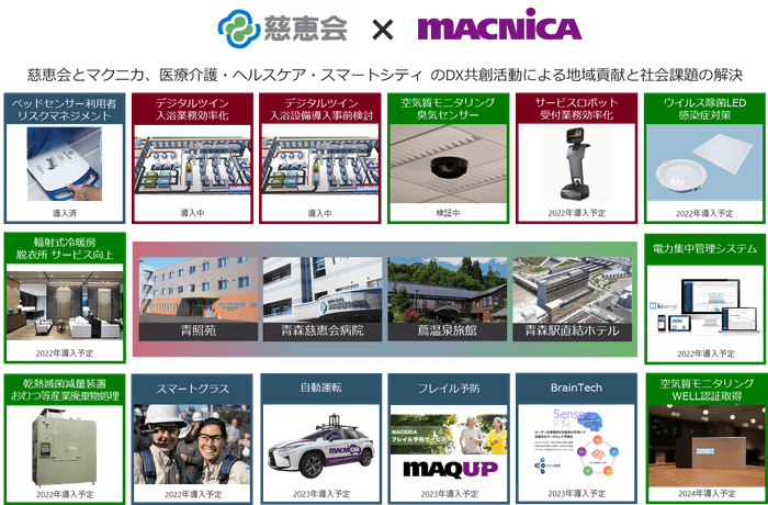 半導体、ネットワーク、サイバーセキュリティ、AI/IoTにおけるトータルサービス・ソリューションプロバイダーの株式会社マクニカ(本社:神奈川県横浜市、代表取締役社長:原 一将、以下マクニカ)は、本州最北端で医療介護・ウェルネス事業を複合的に経営する社団法人 慈恵会(本社:青森県青森市、理事長:丹野 智宙、以下慈恵会)およびそのグループ会社で観光業や飲食業などを経営する株式会社 城ヶ倉観光(本社:青森県青森市、代表取締役:宮本 健四郎)が進めるDX(デジタルトランスフォーメーション)の共創パートナーとして、世界最先端デジタルテクノロジーとマクニカが持つインテリジェンスを掛け合わせたサービス・ソリューションを包括的に提供することで、慈恵会グループにおけるサービスの価値向上とスタッフの負担軽減、労働力不足解消を実現し、さらには地域貢献、地方創生の支援を行うことを発表いたします。