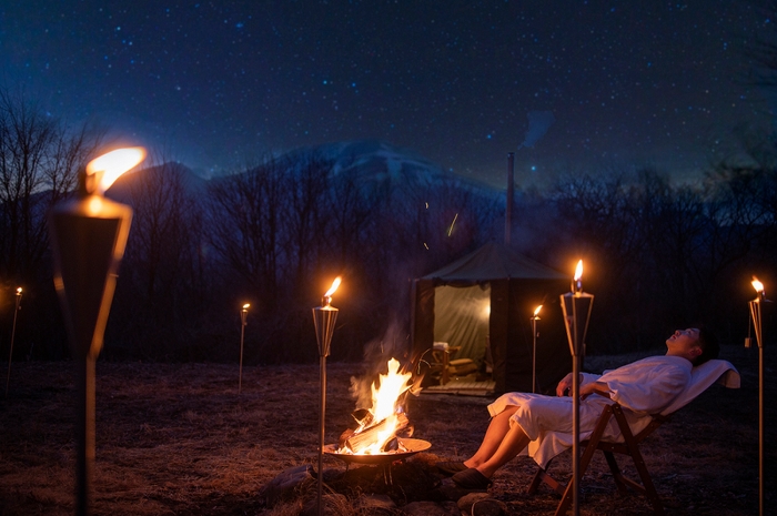 各施設が独創的なテーマで、圧倒的非日常を提供する「星のや」。長野県・軽井沢の滞在型リゾート「星のや軽井沢」にて、2021年12月1日~2022年2月28日の期間、浅間山を望むプライベートサウナで心身ともにリフレッシュする「冬の寒暁(かんぎょう)サウナ」を実施します。これは、森に佇むプライベート感のある高台で、早朝に野外サウナと外気浴ができるアクティビティです。目の前に浅間山を望む高台にて、星空から朝焼けへと変化する景色を眺めながら交互浴を行うことで、心身をリフレッシュできます。