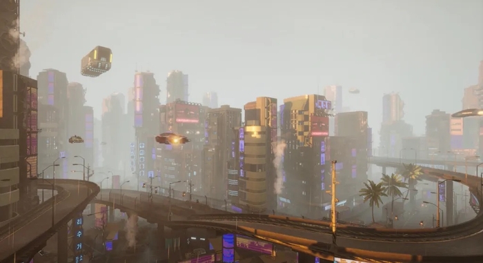 当初は、『ブレードランナー』や『AKIRA』、ゲームの『Cyberpunk 2077』など、ディストピア寄りの都市をイメージしていたため、それらの世界観を踏襲した荒廃感と近未来感のある都市ベースがモデルとなっていました。そこから現在の「新京都」のイメージに至るまでの道のりを知ることができます。