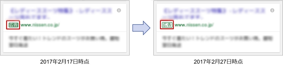 2017年2月22日頃、Google はAdWords 広告の「広告」ラベルのデザインを変更しました。