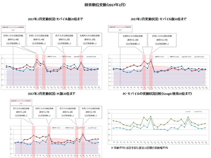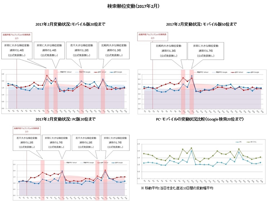2017年2月の順位変動は、モバイル・PC検索ともに上旬から中旬にかけて非常に大きな順位変動が発生しました。