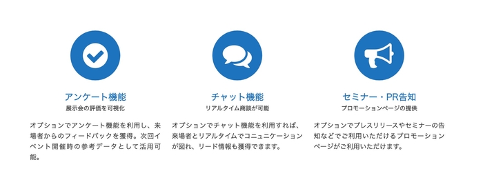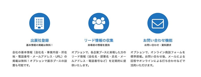 ※コミュニケーションツールのご利用や来場者リストの提供など一部有料プランのお申し込みが必要です。