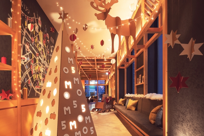 クリスマスといえば、きらびやかなイルミネーションやロマンティックなディナーが定番ですが、OMO5 東京大塚ではひと味ちがったコンテンツが登場。ダンボール素材をベースにしたクリスマスツリーを中心とした装飾や、新登場のアマビエサンタなどが、全力でクリスマスを盛り上げます。