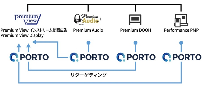 ※2 「PORTO DSP」は広告主がディスプレイ広告と動画広告をプログラムの運用形式で購入できる、デマンドサイドプラットフォームです。PORTOが直接取引する掲載枠や、第三者Ad Exchangeを通じた掲載枠に運用型広告を掲載することで、オーディエンスにリーチできます。