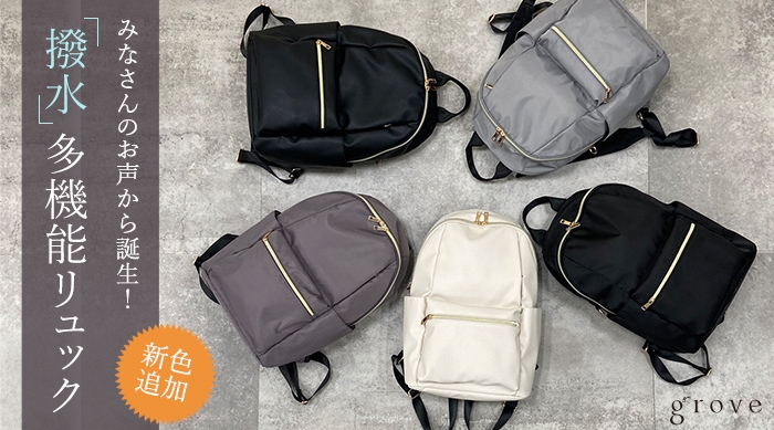 grove(グローブ) フォロワーの声をもとに企画した多機能リュックに 新色登場!12月11日(月)より発売