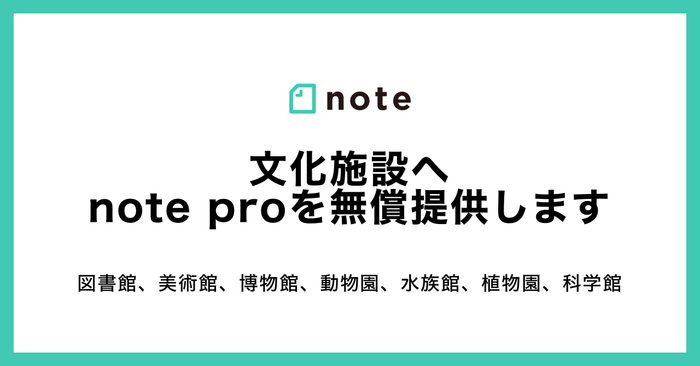 note株式会社(東京都港区)は法人向けプランnote proを全国の文化施設(図書館、美術館、博物館、動物園、水族館、植物園、科学館)へ8月4日から無償提供します。子どもたちの夏休みが始まりましたが、思うように外出ができない状況が続いています。また本来はたくさんの観光客や地域住民で活況となる文化施設も、入場制限など来場者を減らさざるを得ない状況です。