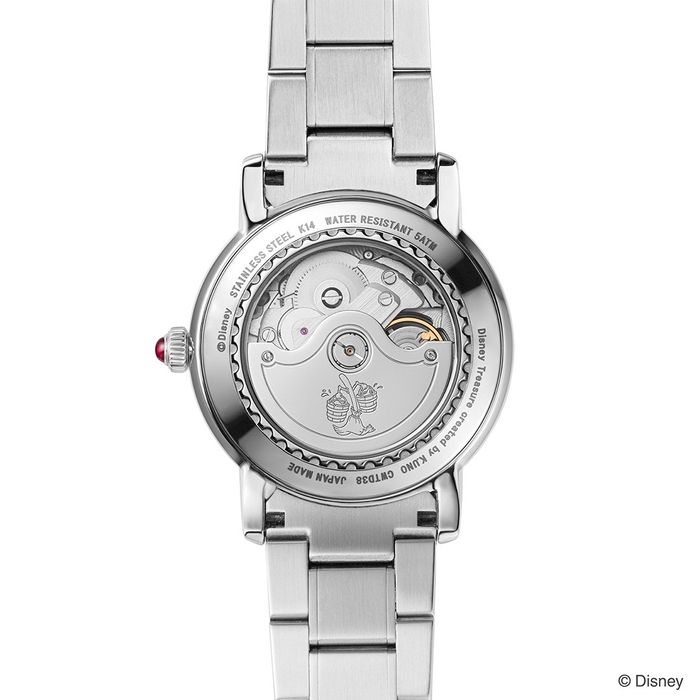 リューズ部分には「ミッキーマウス」のマントを思わせる深紅のルビーをセット。映画公開85周年を記念し、細部までこだわって世界観を表現した85本限定のプレミアムな機械式腕時計です。