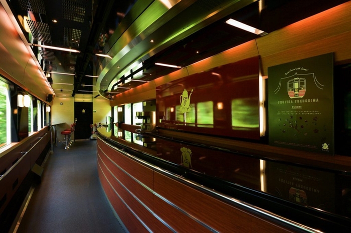 1号車は車両全体に広がる大きく伸びやかなカウンターが、優雅な鉄道の旅を演出します。また自由に利用いただけるカウンター席があり、車内での多彩な過ごし方を提供します。2号車はスイーツや会話をゆったりと楽しめる座席やテーブルの配置で、お客さまにくつろぎの時間を提供します。