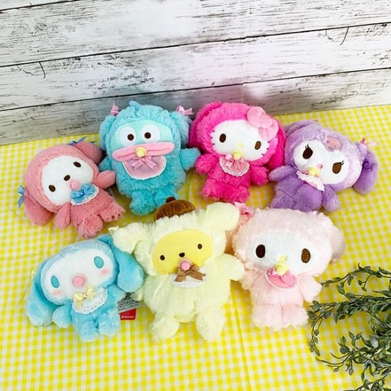サンリオキャラがベビーになってキュートさアップ♪スタイやおしゃぶりにキュンキュンなふわくたぬいぐるみたち
