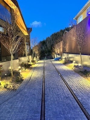 石畳を上ると「幸せの駅」にたどり着き、海だけでなく四季折々の季節を感じていただけます。