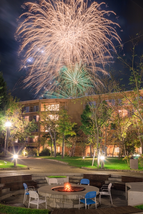 花火の打ち上げ場所は、当ホテルに隣接する「太陽の広場」です。