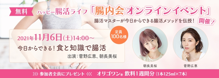 ハーバー「オリゴワン(R)飲料」特設サイト内の腸活サポートサイト「ハッピー腸活ライフ」にて活動中の腸活マスターによるオンラインイベントを開催します。