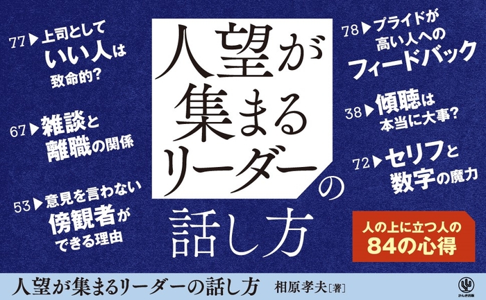 株式会社かんき出版(本社:千代田区 代表取締役社長:齊藤龍男)は、『人望が集まるリーダーの話し方』(相原 孝夫/著)https://kanki-pub.co.jp/pub/book/details/9784761276928を2023年9月22日より全国の書店・オンライン書店等(一部除く)で発売いたします。
